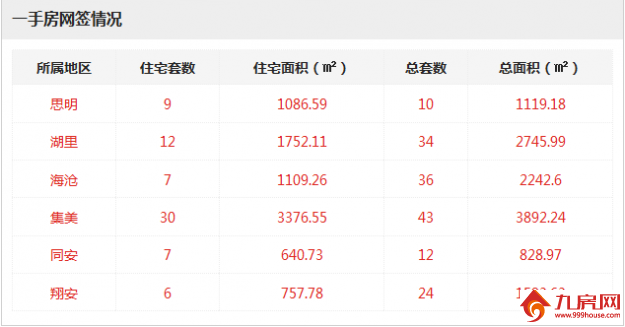 从各区的一手住宅成交数据来看,海沧区成交42套,环比上涨500.00%,位居全市一手住宅成交排行榜榜首;集美区成交36套,位居排行榜第二位;湖里区成交12套,位居排行榜第三位。