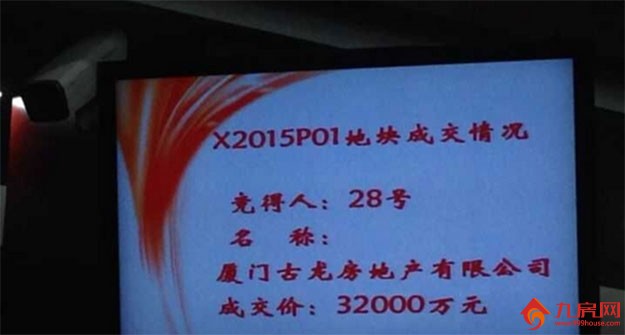 此次拍卖会有恒大,万科,中航,金地,住宅,禹洲,中骏,融侨,世茂,华润等10余家房企参与竞拍,更有外来房企想借此进驻厦门。而厦门古龙房地产有限公司(28号)以总价32000万元竞得翔安X2015P01地块,楼面价12549.02元/平米,溢价率57.64%。