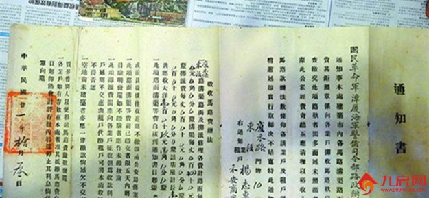 另一份是民国二十一年(1932年)10月3日,发给厦禾路东段禾安商店杨志卓的通知书。内容为路政办事处建筑的市内各马路沟渠路面垫支工程费,照章则向各业户摊收马路款,很多人已经缴款,但拖延未缴的也不少,希望该业户及租户遵照办理,如果逾期将实行取缔,绝不姑息宽容。