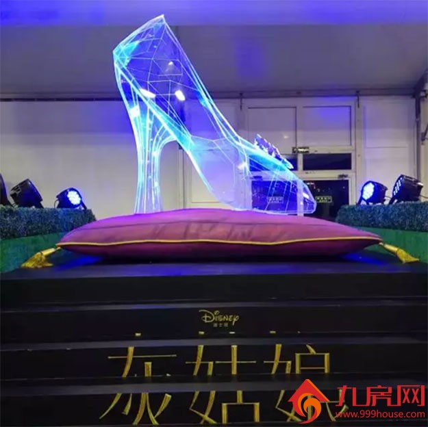 现场还有一只巨大的水晶鞋,晶莹剔透,闪烁蓝光。你知道的,这是灰姑娘的水晶鞋。因为“魔法”,这只水晶鞋变得巨大,有1.2米高呢!这在迪士尼博览全国巡游中,还是首次出现。