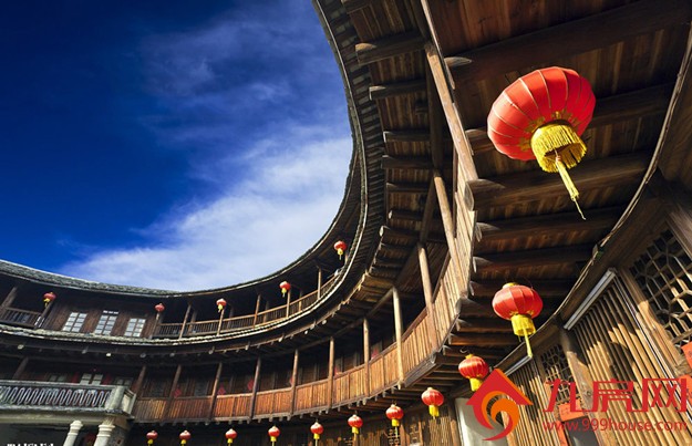 土楼:是利用未经焙烧的按一定比例的沙质黏土和黏质沙土拌合而成的泥土,以夹墙板夯筑而成墙体(少数以土培砖 砌墙)、柱梁等构架全部采用木料的楼屋,简言之,就是以生土版筑墙作为承重系统的任何两层以上的房屋。