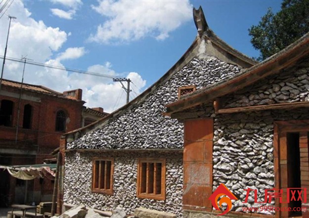 蚵壳厝:是闽南泉州地区一种传统特色建筑。即用蚵壳建造的房屋(闽南语中,厝乃房屋之意,蚵就是海蛎)。主要特色在于蚵壳、砖石砌成墙,大面积的灰白色蚵壳与花白色花岗石、红色砖构成一幅幅色彩对比强烈、富有美感的图案,那一堵堵的蚵壳如片片鱼鳞,十分好看。
