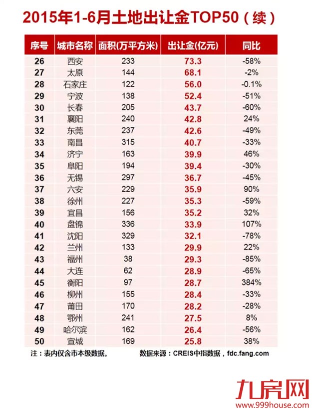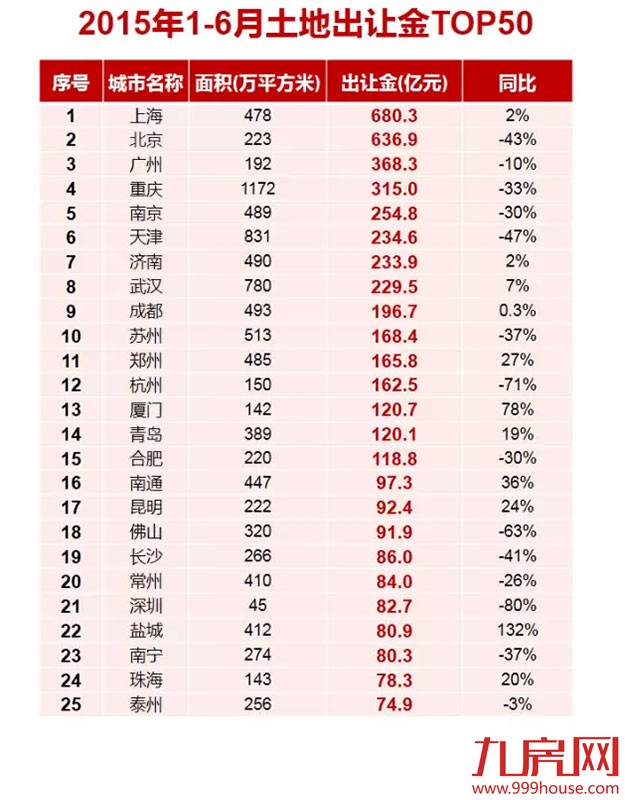 2015年上半年,全国商品房市场库存持续高位徘徊,企业预期趋于谨慎,加之地方政府供地节奏偏缓,土地市场供求两端表现均较为低迷。下半年,楼市回暖已经辐射到土地市场,6月30日多个城市迎来上半年最后土地竞拍,包括北京在内的6个城市单日收金超200亿元。总而言之,下半年楼市的小宇宙燃烧,将会带给土地市场振奋!