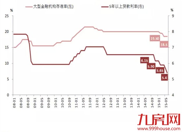 九房点评:自去年11月开始,中央首次降息启动此轮量化宽松调整,今年上半年经济调整压力加大,央行两次全面降准和三次降息营造宽松金融环境,引导金融计划信贷资源配置方向,不断释放资金流动性,降低社会融资成本。目前五年以上金融机构长期贷款利率仅5.4%,公积金长期贷款利率为3.5%,均已处于历史低位,存款准备金率尚存下调空间。