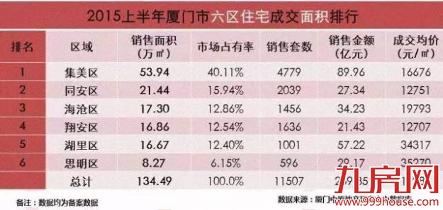 【六区住宅成交面积排名】