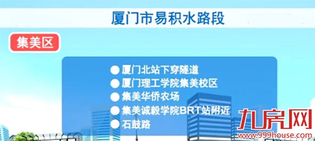 集美区易积水路段则主要在厦门北站下穿隧道、厦门理工学院集美校区等9个路段;