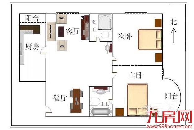 禁忌十,房屋朝向很重要,户向与楼向应一致,楼向座北向南,户型也应座北向南,以此类推,户型朝向以客厅大门阳台为向,客厅后面为座。