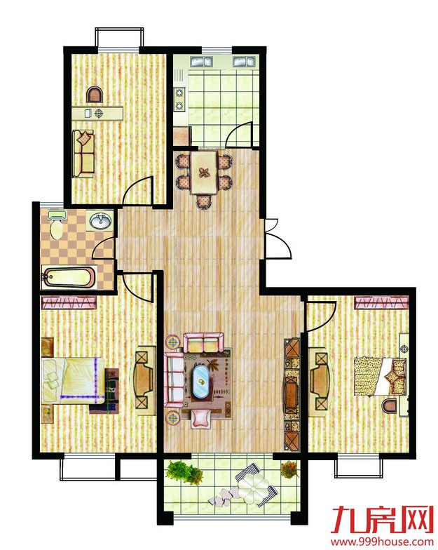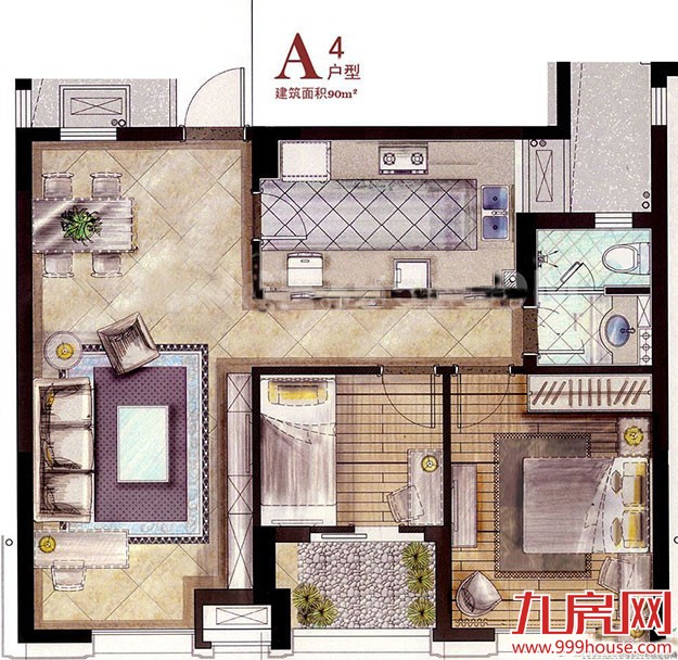 1.在100平方米左右的房子户型设计中,两居室一般是80-90平方米,三居室是110-120平方米。