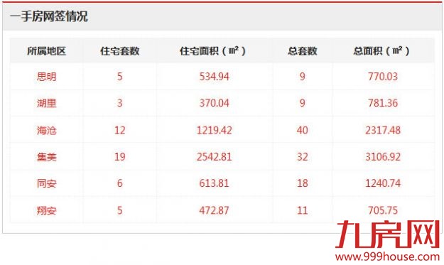 从各区的一手住宅成交数据来看,集美成交19套,位居全市一手住宅成交排行榜榜首;海沧区成交12套,位居排行榜第二位;同安区成交6套,位居排行榜第三位。