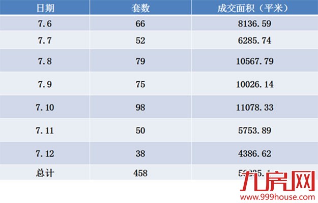 (7月6日-7月12日全市新房成交情况)