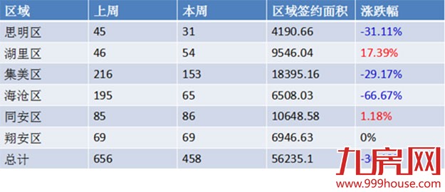 思明区 本周一手住宅成交31套,比上周少了14套,区域签约面积为4190.66平方米。