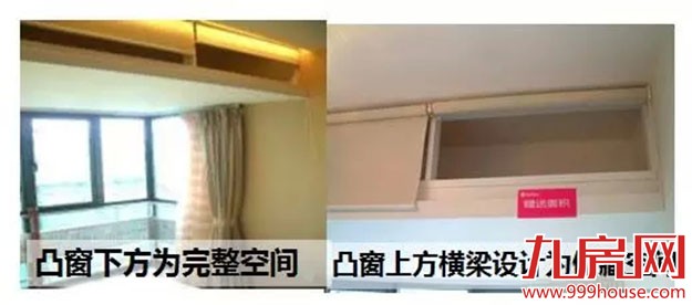 在凸窗上部分设计横梁,可以将部分空间隔成两层,使得凸窗高度不超过2.1米,上层空间0.7米左右用于储藏空间(如下图);