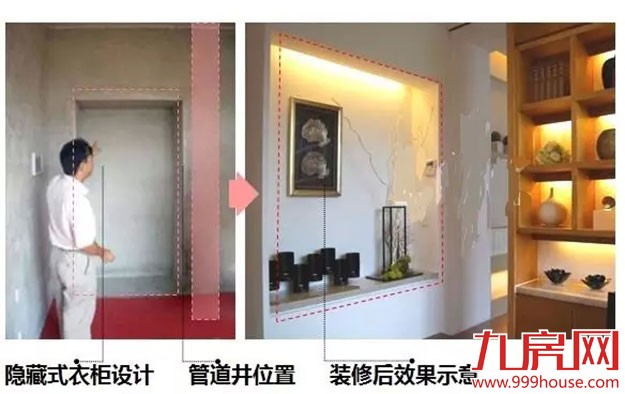 可以结合管道井,增加储藏空间。在管道井设计处可对于其齐平墙面设隐蔽式储藏空间,净高小于2.2米可不计入建筑面积。