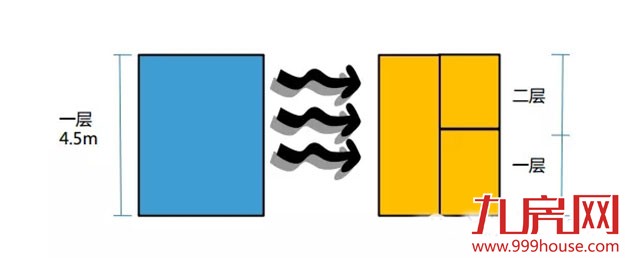 4.5m的层高,则局部可隔成两层。4.5米层高隔成两层;主要有4个优势:4.5米的层高(发展商隔成两层),使得每套单位都享有“买一层送一层”的实惠;赠送凸窗;二层利用公共走道上空改造成多功能室;空间布局自由灵活,可组合使用。