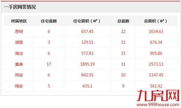 从各区的一手住宅成交数据来看,集美成交17套,位居全市一手住宅成交排行榜榜首;思明区、海沧区和同安区均成交6套,位居排行榜第二位;翔安区成交5套,位居排行榜第三位。