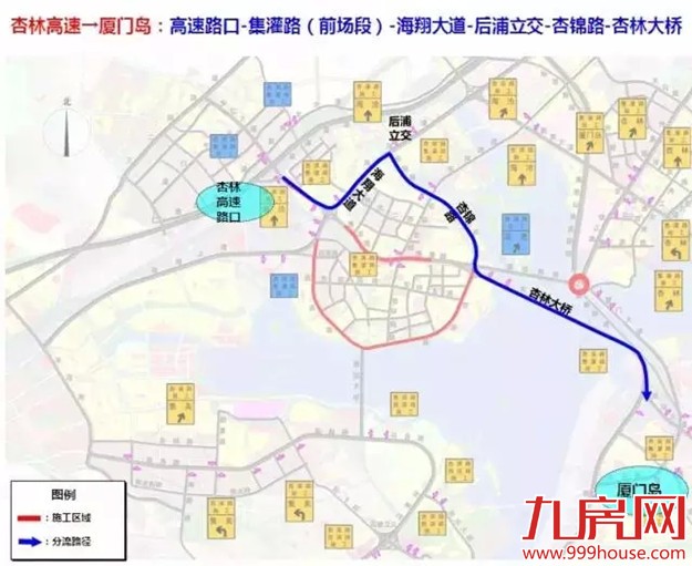 交警建议,从杏林高速公路出来的车辆,走海翔大道-后埔立交-杏锦路-杏林大桥绕行,整条路线大约比原先长1.5公里。其中,后埔立交已于7月10日打通。