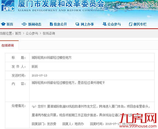 日前,随着厦漳城际轨道交通R3线建设工作的逐渐推进,成为厦门市民心中最为关注的话题。近来,网友们纷纷向厦门市发改委就厦漳城际轨道R3线的站点建设情况进行咨询。