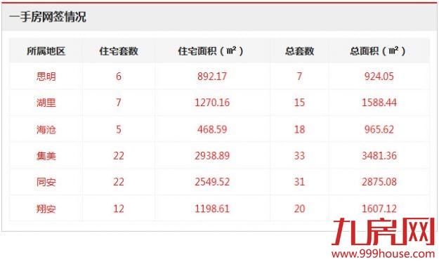 从各区的一手住宅成交数据来看,集美区、同安区均成交22套,并列位居全市一手住宅成交排行榜榜首;翔安区成交12套,位居排行榜第二位;湖里区成交7套,位居排行榜第三位。