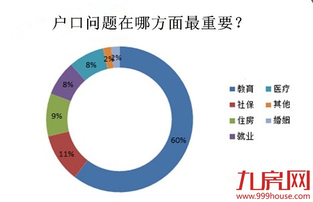 针对户籍制度改革大家最关心什么,有调查显示教育是网友最关心的问题。有60.45%网友选择了此项,占据了一半以上。其次是社保问题,选择此项的网友占全部的10.78%。再次是住房问题,选择此项的占9.48%。然后是就业问题,7.82%网友选择此项。和就业基本持平的是医疗方面,占全部的7.81%。婚姻问题占比较少,只占了1.82%。另外还有1.81%的网友选择了其他。