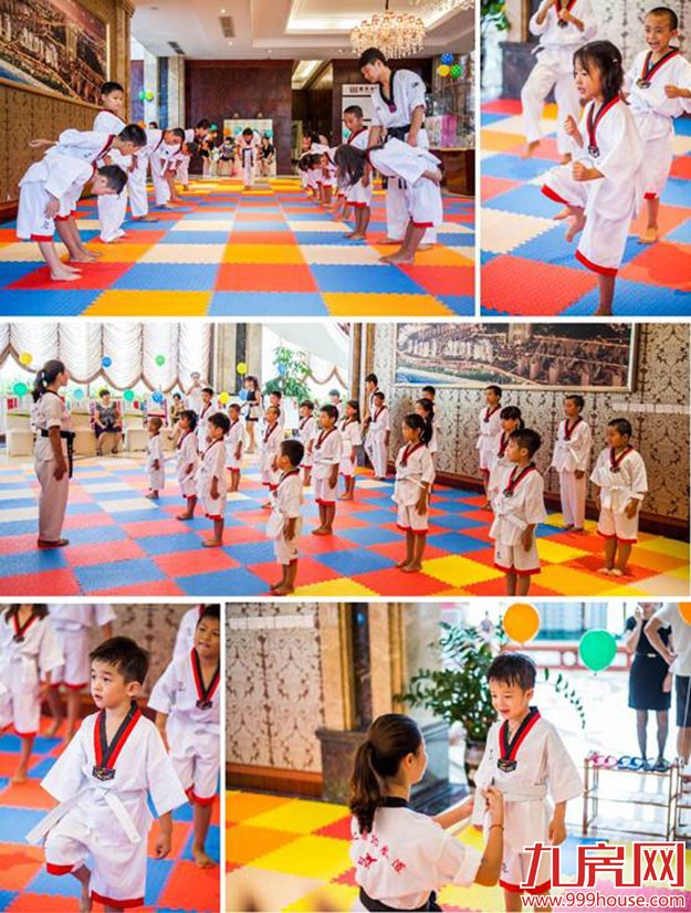 在教练的指导下,穿着一身白色跆拳道服的小业主们,进场、立正、敬礼,一字排开,英姿少年,勃勃生气。教练给大家讲解跆拳道的起源、服饰、精神……“礼义廉耻、忍耐克己、百折不屈、临战不退”跆拳道的精神口号,响彻鑫塔,虽然清脆但富有力量。