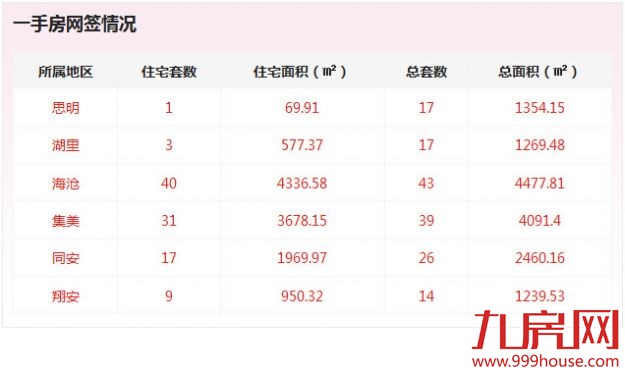 从各区的一手住宅成交数据来看,海沧区成交40套,位居全市一手住宅成交排行榜榜首;集美区成交31套,位居排行榜第二位;同安区成交17套,并列排行榜第三位。