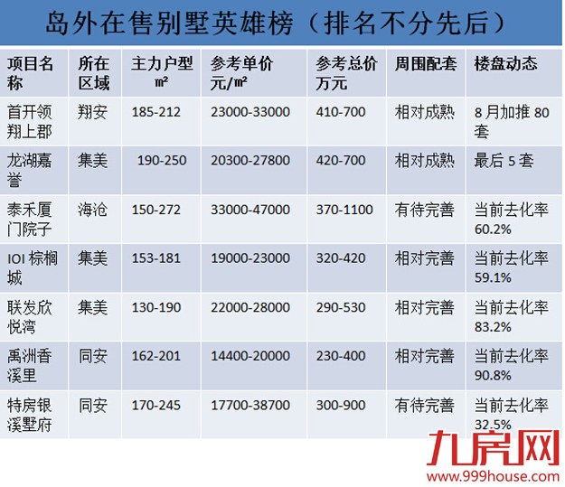 经过一系列角逐和比拼,岛外在售别墅英雄榜出炉。(以下别墅产品排名不分先后)