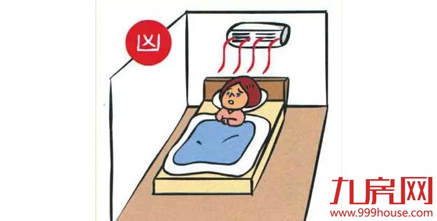 床位安置在空调下方,寒气不断吹向头、肩、颈,加上人在睡眠状态时,毛细孔会略微放开,轻者经常感冒,重者会造成头、肩、颈的神经紧张、肌肉僵化。