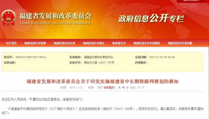 11月22日,省发改委网站公布《关于印发实施福建省中长期铁路网规划的通知》。