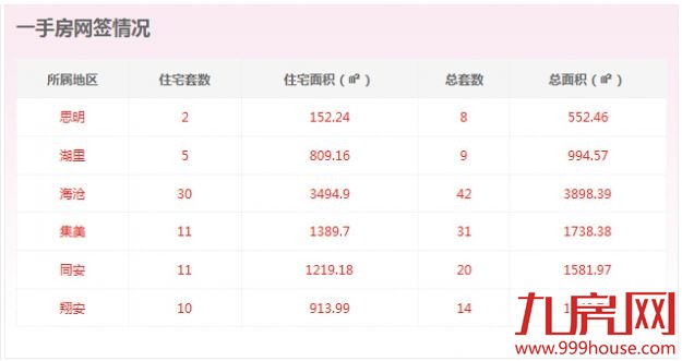 从各区的一手住宅成交数据来看,海沧区成交30套,位居全市一手住宅成交排行榜榜首;集美区和同安区均成交11套,并列位居排行榜第二位;翔安区成交10套,并列排行榜第三位。