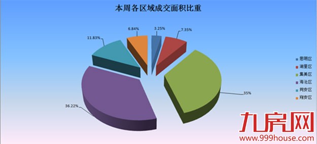 集美区 本周一手住宅成交249套,比上周多了13套,区域签约面积为29935.49平方米。