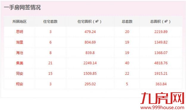 从各区的一手住宅成交数据来看,集美区成交21套,位居全市一手住宅成交排行榜榜首;同安区成交15套,位居排行榜第二位;海沧区成交8套,并列排行榜第三位。