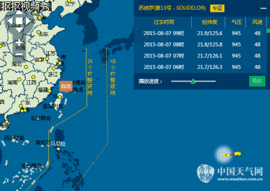 台风“苏迪罗”的今天15时中心位于我国台湾省花莲东偏南方大约360公里的洋面上,就是北纬22.4度、东经124.7度,中心气压为935百帕,中心附近最大风力15级(50米/秒,强台风级)