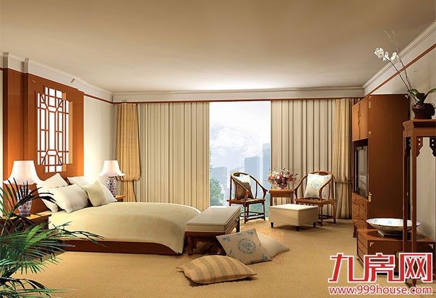 这是适合于较大卧室的摆放方法,可以根据床头后面墙角空地的大小在拜访一个储物柜。