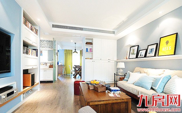 这种类型的家具一般都是由大小不同的方格组成,高处部分比较适合用来摆放书籍,柜体厚度至少保持30厘米;而低处用于摆放电视的柜体厚度至少保持50厘米。同时组合柜整体的高度和横宽还要考虑与墙壁的面积相协调。