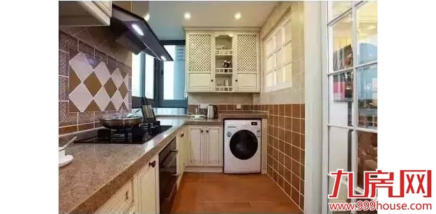 厨房虽小,但是如果设计合理的话也是可以充分利用的,把洗衣机放在厨房就是一个不错的选择。