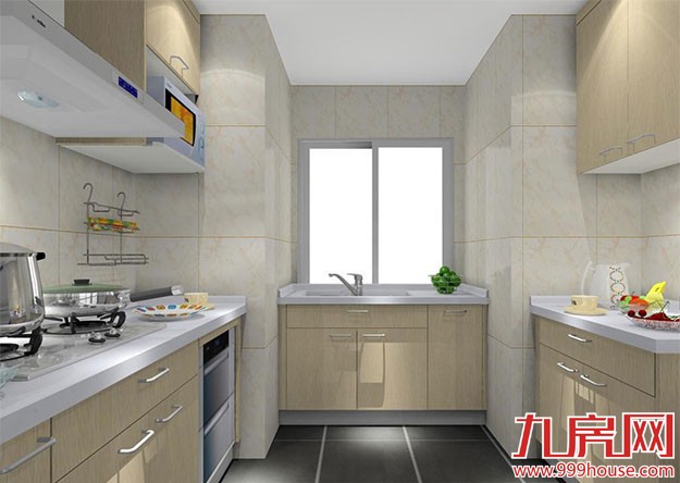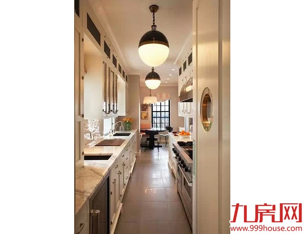 如果空间宽度还可以的话,可以设计成走廊型的厨房,将清洁区和配膳区安排在一起,烹调区相对独立,最大限度地增加操作台面积和储物空间。