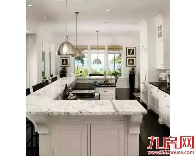 U型厨房在国外是很常见的模式,洗涤区、烹饪区、操作区、贮藏区划分明确,操作流程合理,可以容纳多人操作。