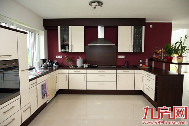 即使是U型厨房,也是要注重收纳的,满满的吊柜肯定少不了。