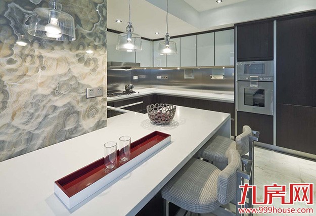 带岛台型橱柜是目前最时尚的一种设计,厨房空间越来越大,对整体厨房的品质追求也越来越高。