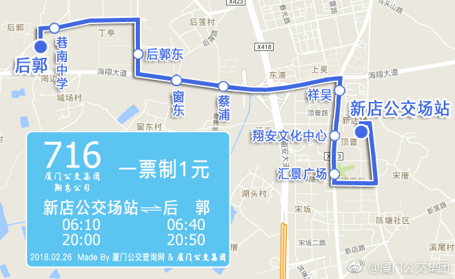 本网从厦门公交集团获悉,3月1日起,厦门将调整716路至新店公交场站始发,进一步方便乘客往返新店镇政府、翔安区文化活动中心片区的交通出行。