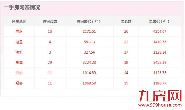 从各区的一手住宅成交数据来看,集美区成交29套,位居全市一手住宅成交排行榜榜首;思明区成交13套,位居排行榜第二位;同安区和翔安区均成交11套,并列位居排行榜第三位。