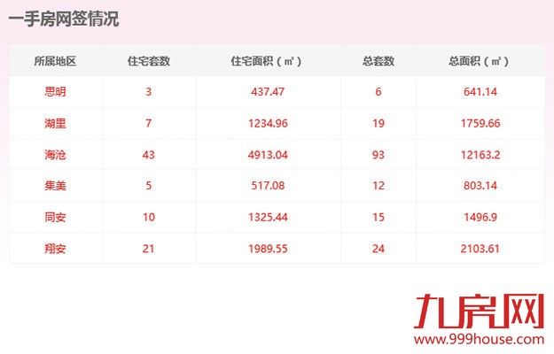 从各区的一手住宅成交数据来看,海沧区成交43套,位居全市一手住宅成交排行榜榜首;翔安区成交21套,位居排行榜第二位;同安区成交10套,位居排行榜第三位。
