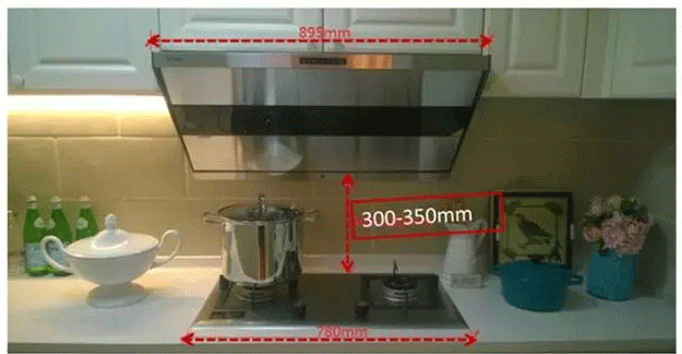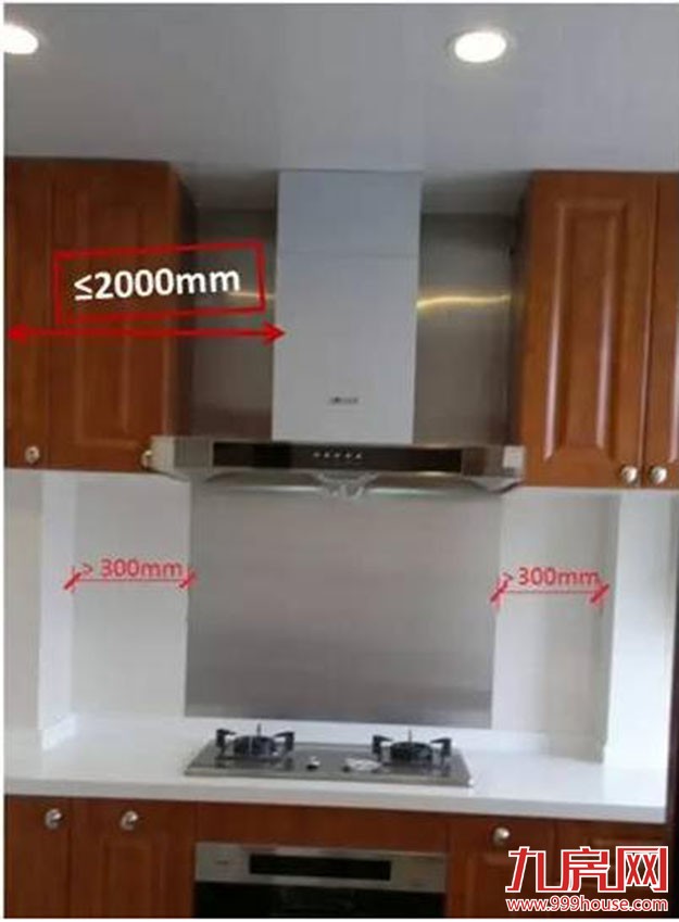 普通家庭一般选择双眼灶,为了能将油烟排除,油烟机与灶具应处于同一中心上,油烟机宽度宜大于灶具宽度100mm以上。油烟机的型号应按照厨房吊顶高度选择,吊顶高度低于2.2m或油烟机烟管橱柜暗藏安装的,宜选择近吸式油烟机或中式油烟机,以满足烟管等安装空间。近吸式油烟机底边应高出台面300-350mm,以保证油烟散开前背油烟机吸走。采用欧式油烟机的厨房,吊顶高度宜高于2.2m。