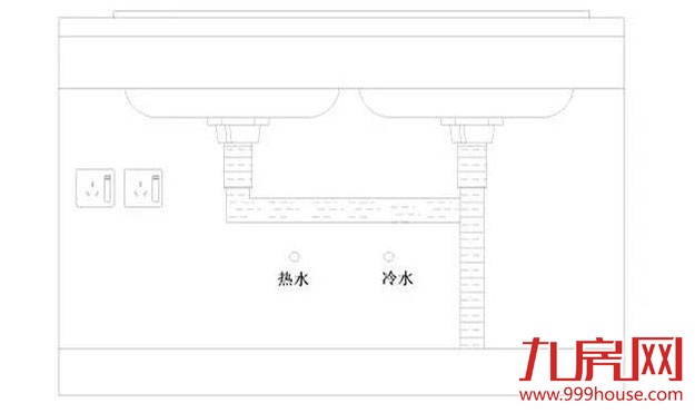 水槽柜内预留2个备用插座,用于水槽洗碗机、净水器、小厨宝、厨余垃圾处理器等电器。插座位置应高于水管角阀或使用防溅水型插座。