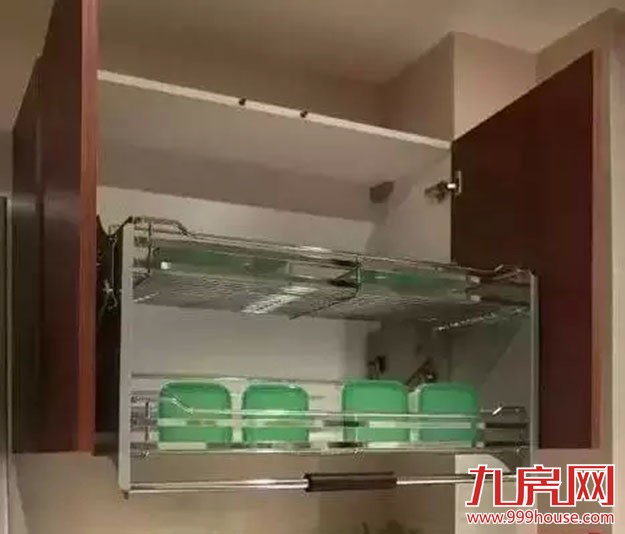 厨房设置下拉式储物柜可自由上升,方便存取物品,同时节约存储空间。
