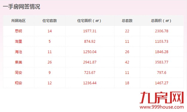 从各区的一手住宅成交数据来看,集美区成交26套,位居全市一手住宅成交排行榜榜首;思明区成交14套,位居排行榜第二位;翔安区成交12套,位居排行榜第三位。