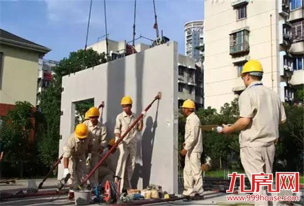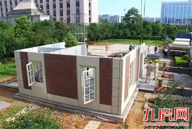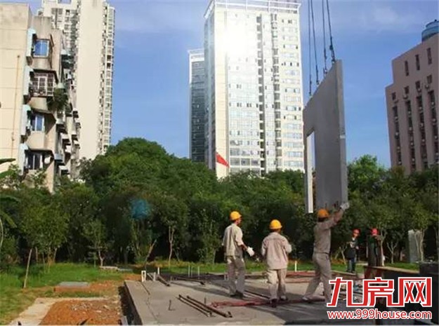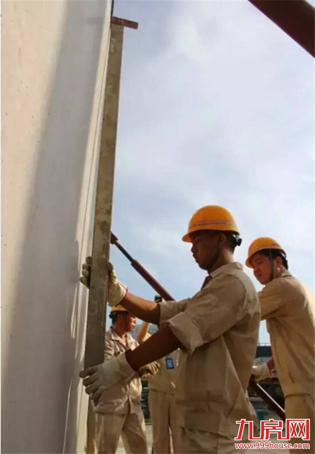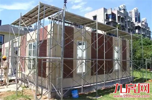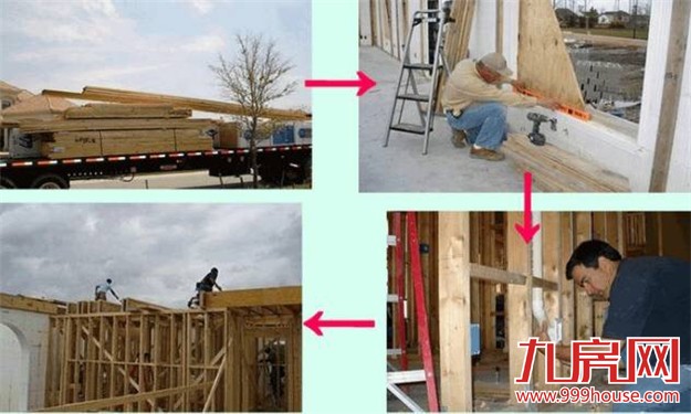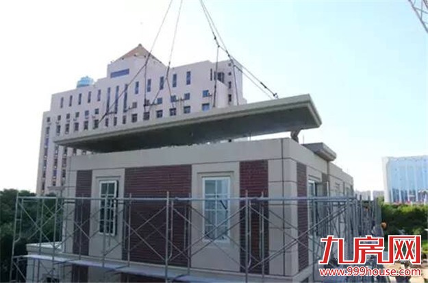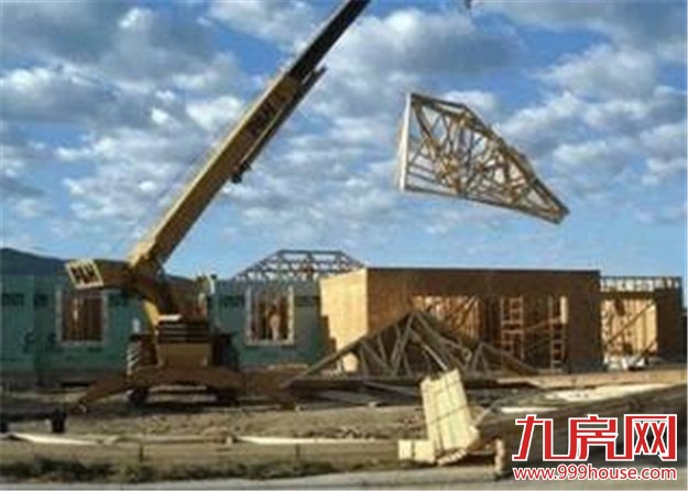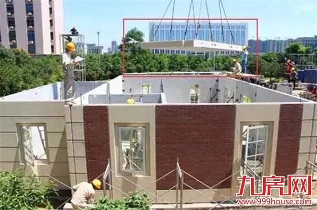 2.大部分材料是现成的,大卡车运来后工人像搭积木一样把材料“组装”起来。