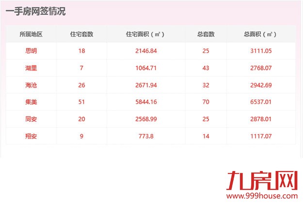 从各区的一手住宅成交数据来看,集美区成交51套,位居全市一手住宅成交排行榜榜首;海沧区成交26套,位居排行榜第二位;同安区成交20套,位居排行榜第三位。