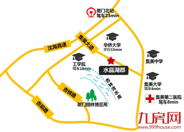 交通便捷,紧邻厦门大桥桥头,集美大桥,杏林大桥可直通岛内,BRT直达项目。厦门北站、高崎机场、沈海高速半小时内均可到达。