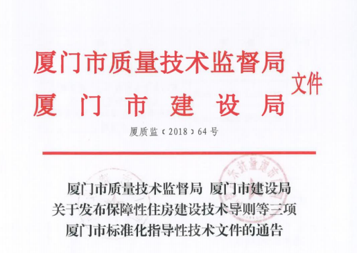 厦门市建设局和厦门市质量技术监督局近日联合发布《保障性住房建设技术导则》,以为规范厦门市保障性住房建设,合理确定保障性住房的建设内容、规模和建设标准,提高保障性住房的功能质量和改善居民的居住生活环境,新建保障性住房应满足绿色建筑一星级及以上标准、满足厦门海绵城市的相关要求,该技术导则从5月23日开始实施。